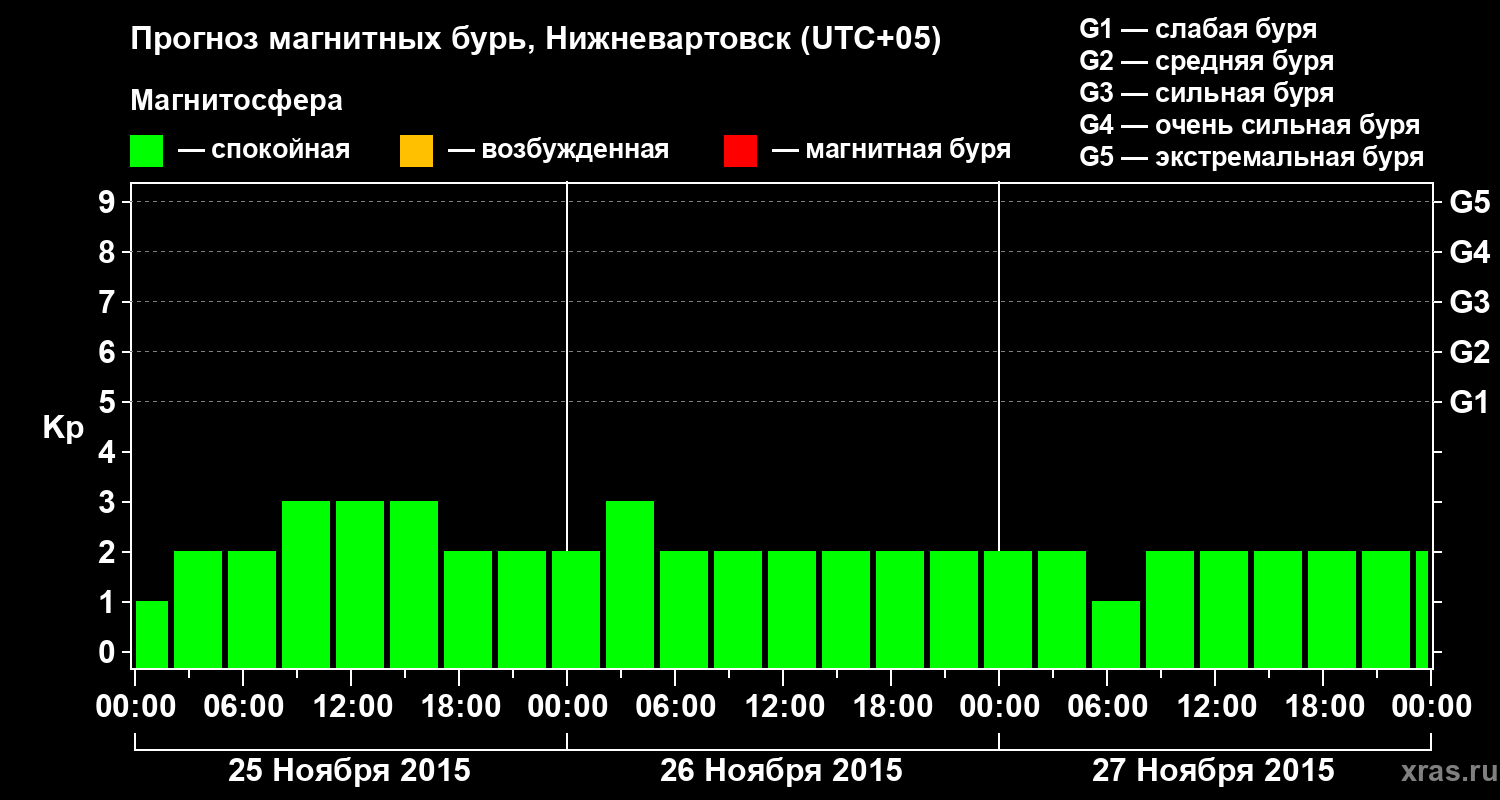 Прогноз магнитных бурь в Нижневартовске — 25 ноября 2015 года