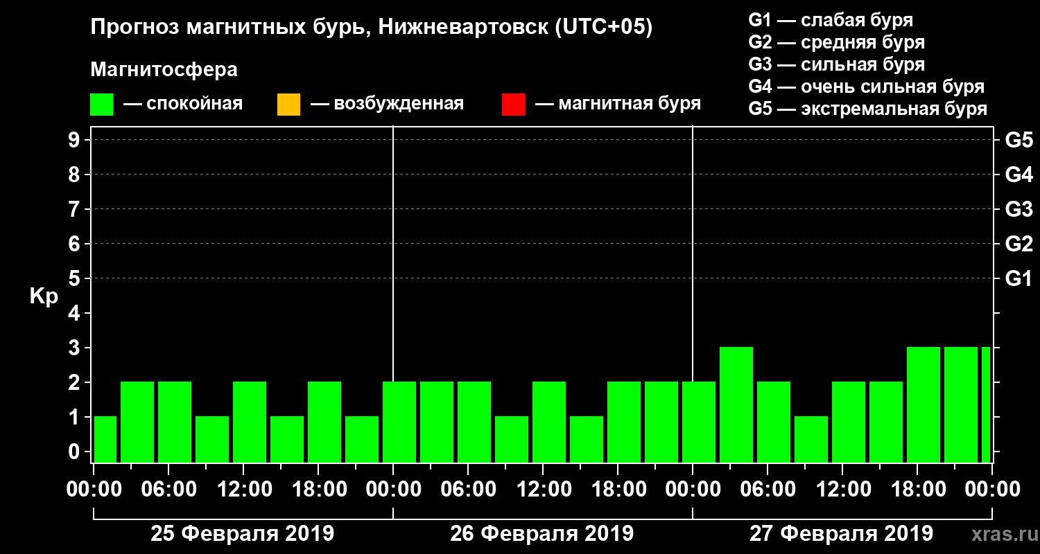 Прогноз магнитных бурь в Нижневартовске на 25 февраля 2019 года