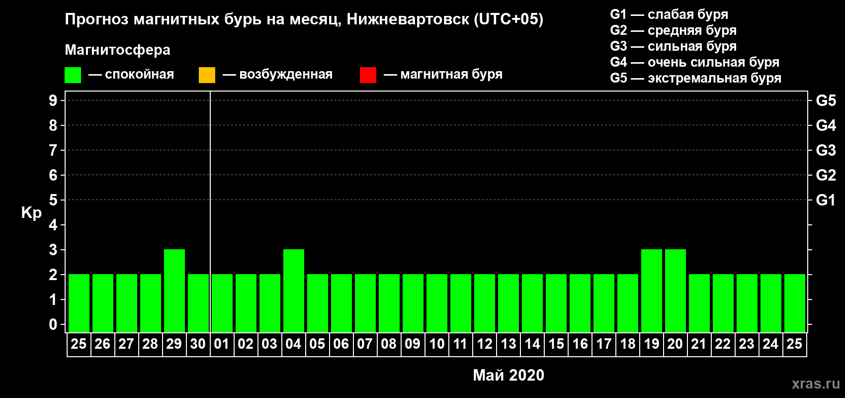 Прогноз магнитных бурь в Нижневартовске — 25 апреля 2020 года