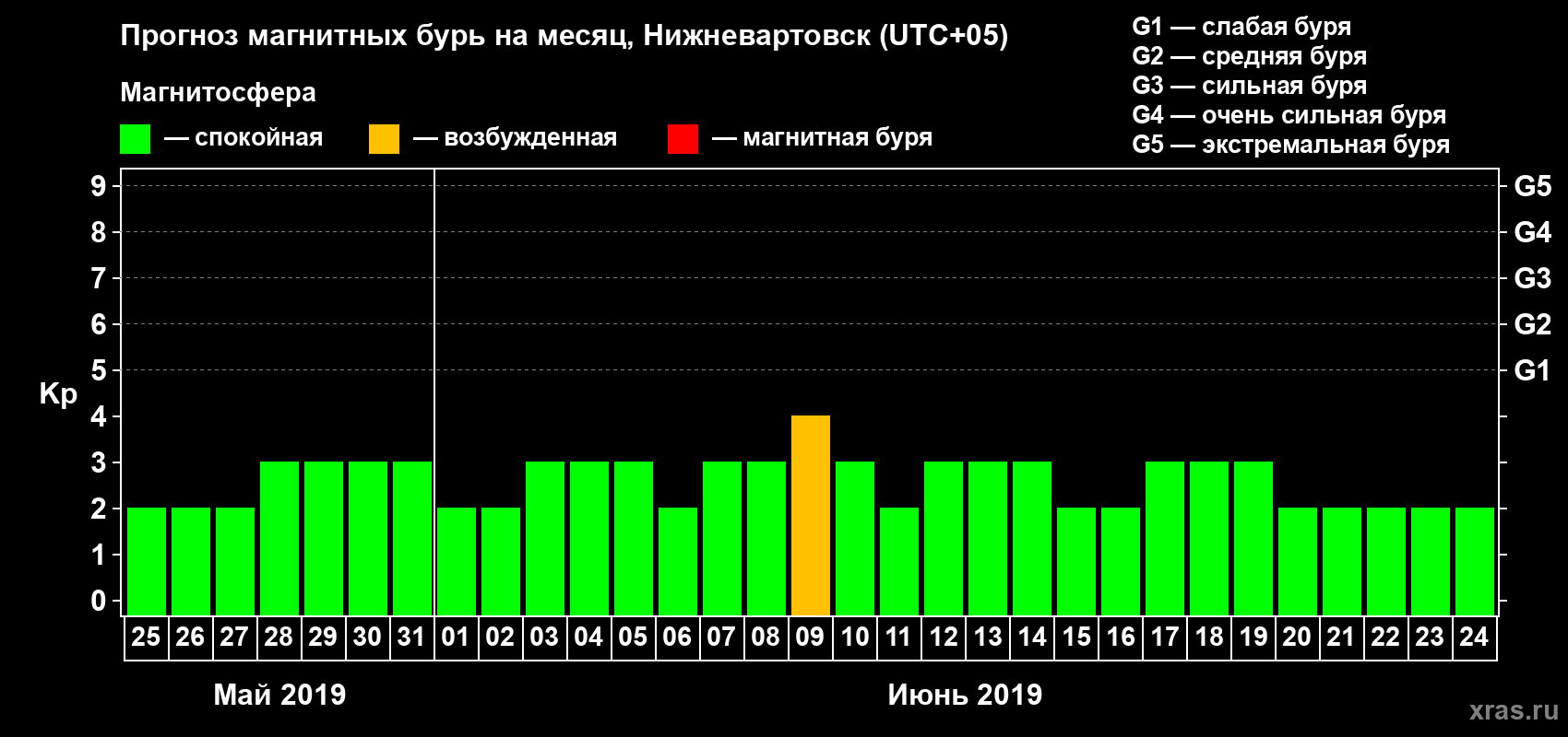 Прогноз магнитных бурь в Нижневартовске на 25 мая 2019 года