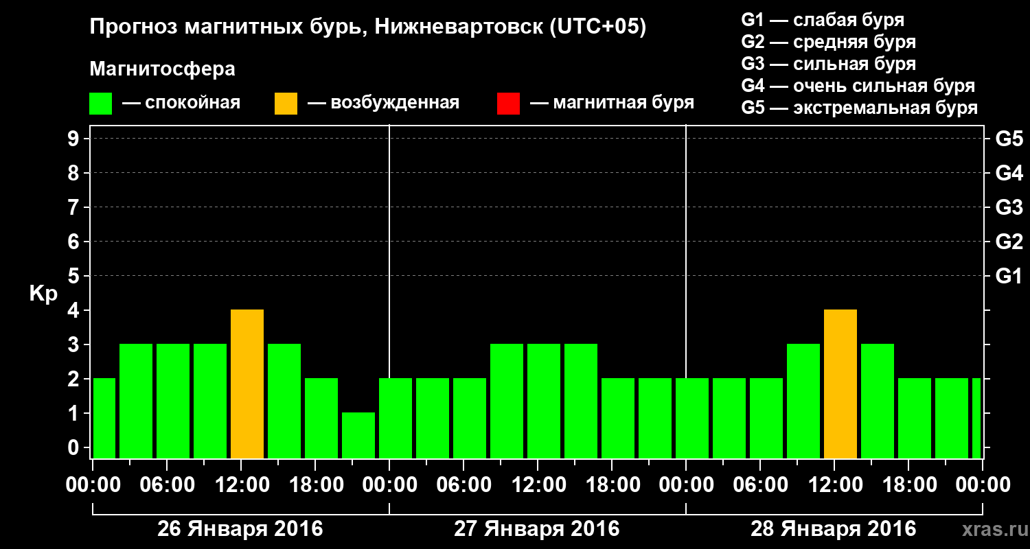 Прогноз магнитных бурь в Нижневартовске — 26 января 2016 года
