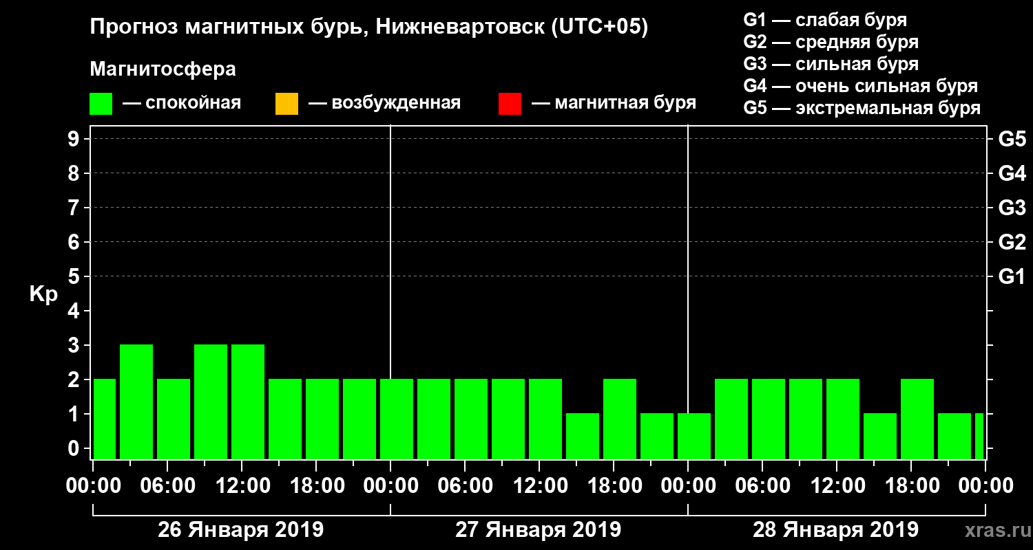Прогноз магнитных бурь в Нижневартовске на 26 января 2019 года