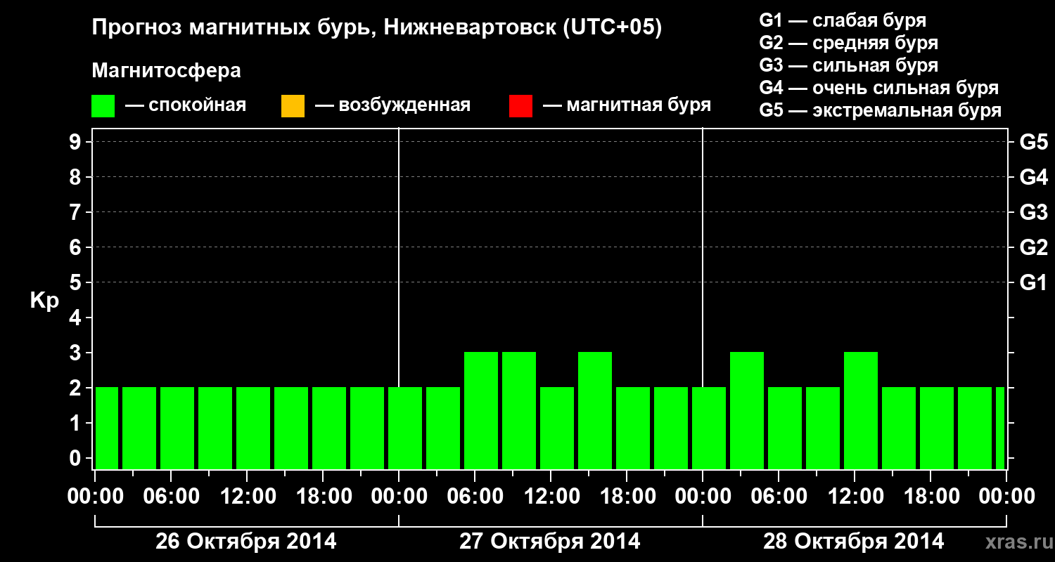 Прогноз магнитных бурь в Нижневартовске — 26 октября 2014 года