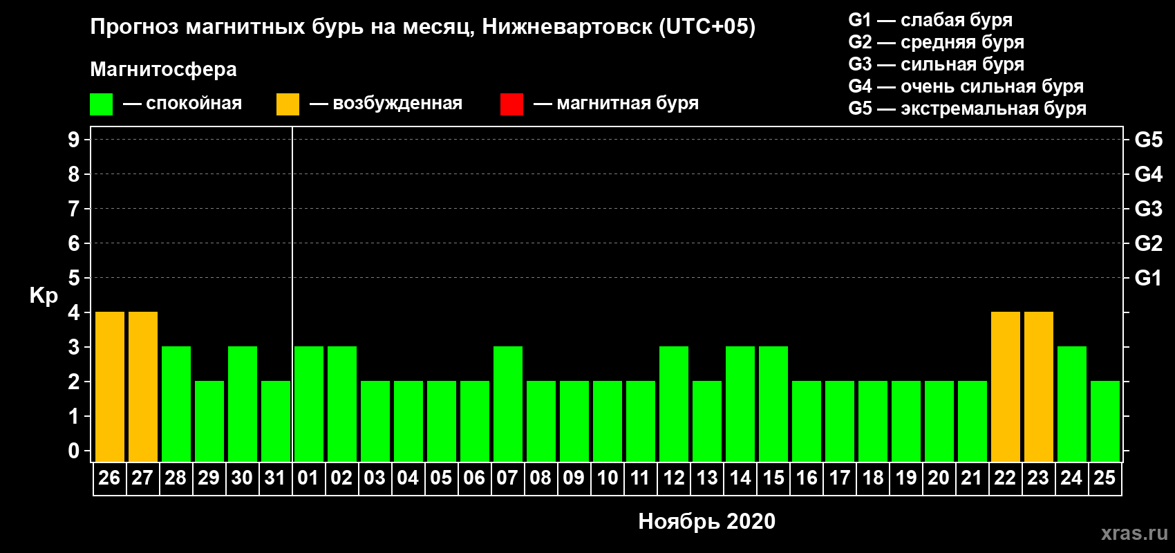 Прогноз магнитных бурь в Нижневартовске — 26 октября 2020 года