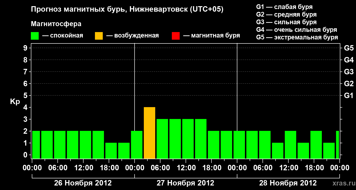 Прогноз магнитных бурь в Нижневартовске на 26 ноября 2012 года