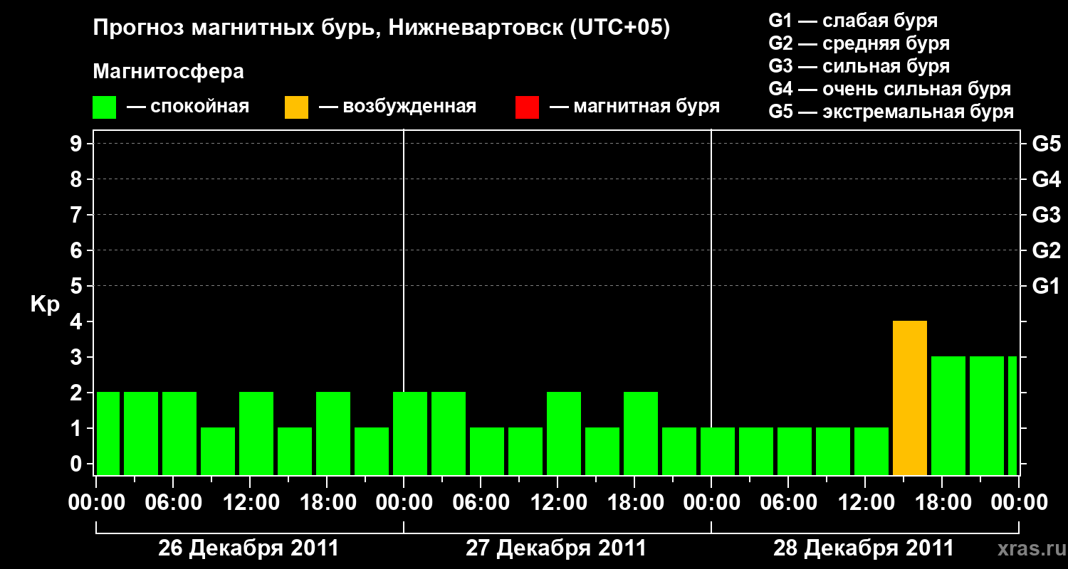 Прогноз магнитных бурь в Нижневартовске — 26 декабря 2011 года