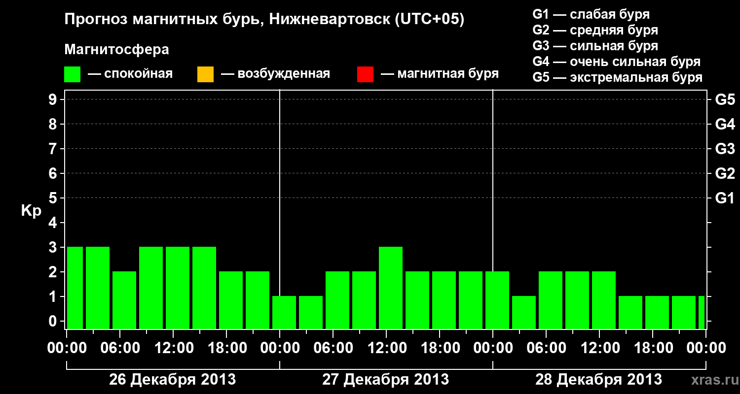 Прогноз магнитных бурь в Нижневартовске — 26 декабря 2013 года