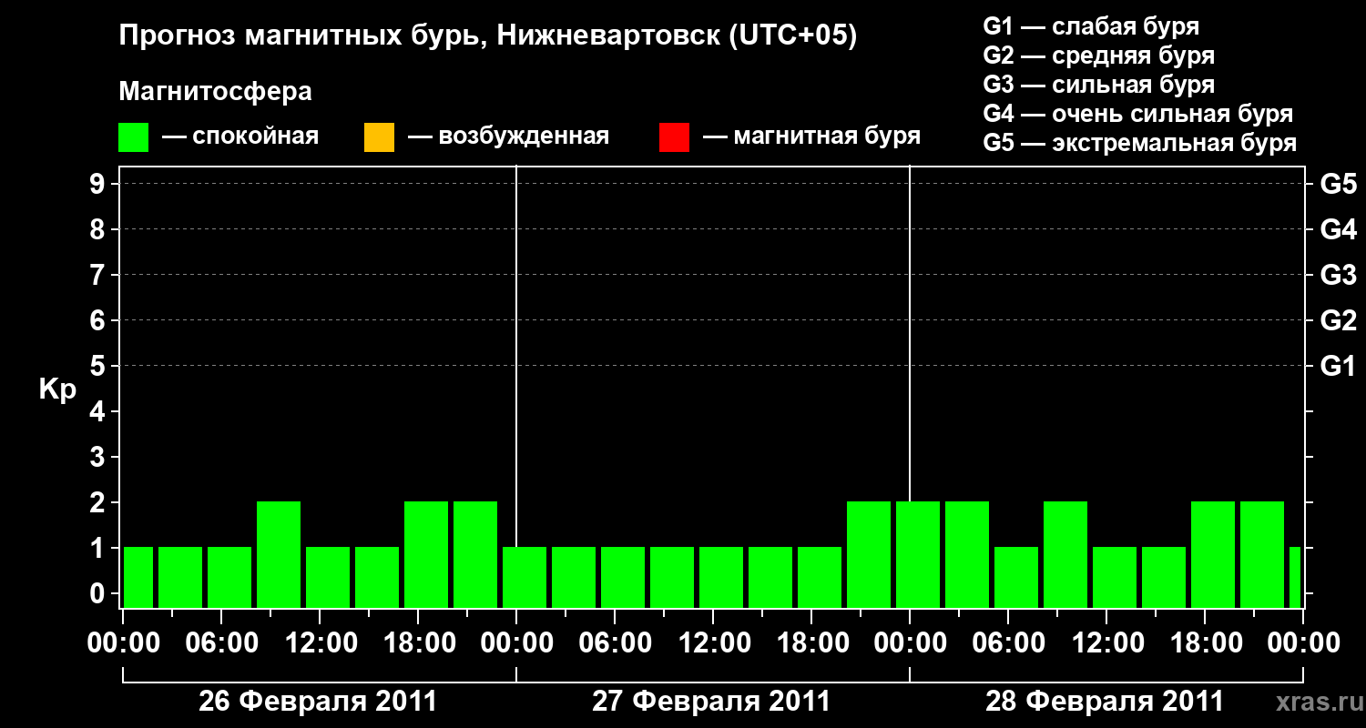 Прогноз магнитных бурь в Нижневартовске — 26 февраля 2011 года