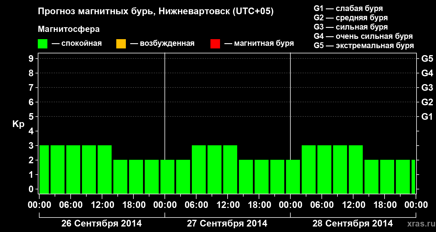Прогноз магнитных бурь в Нижневартовске на 26 сентября 2014 года
