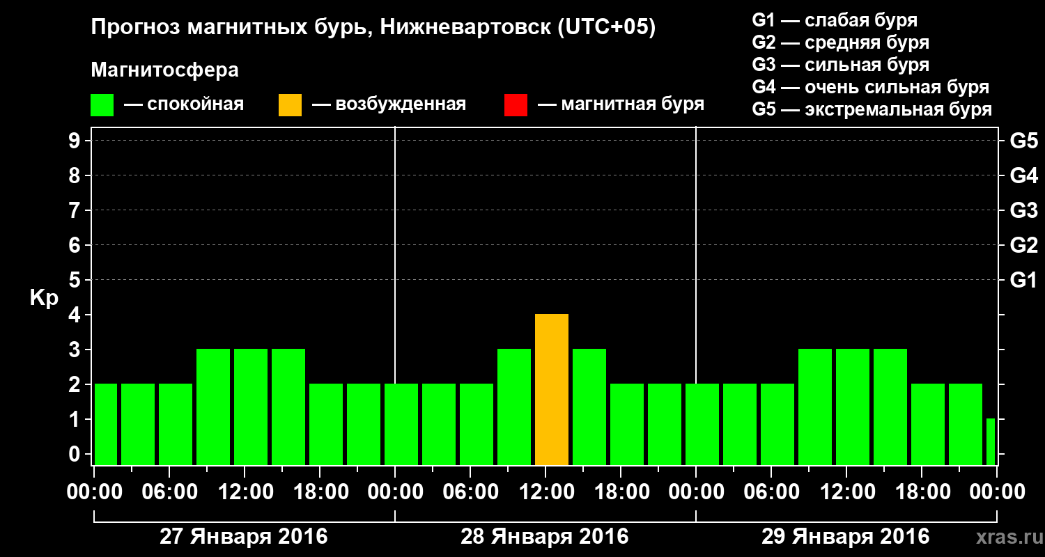 Прогноз магнитных бурь в Нижневартовске — 27 января 2016 года