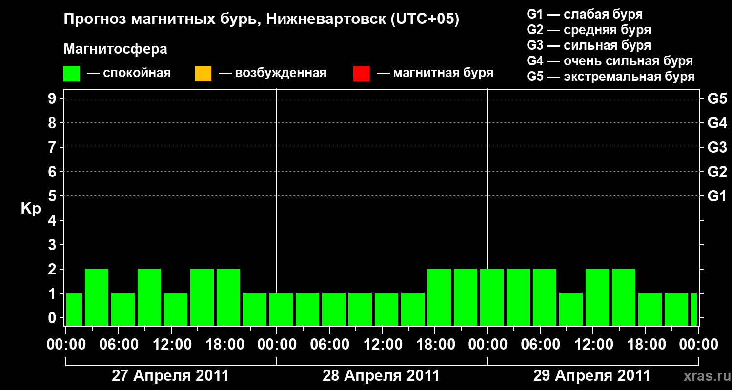 Прогноз магнитных бурь в Нижневартовске — 27 апреля 2011 года
