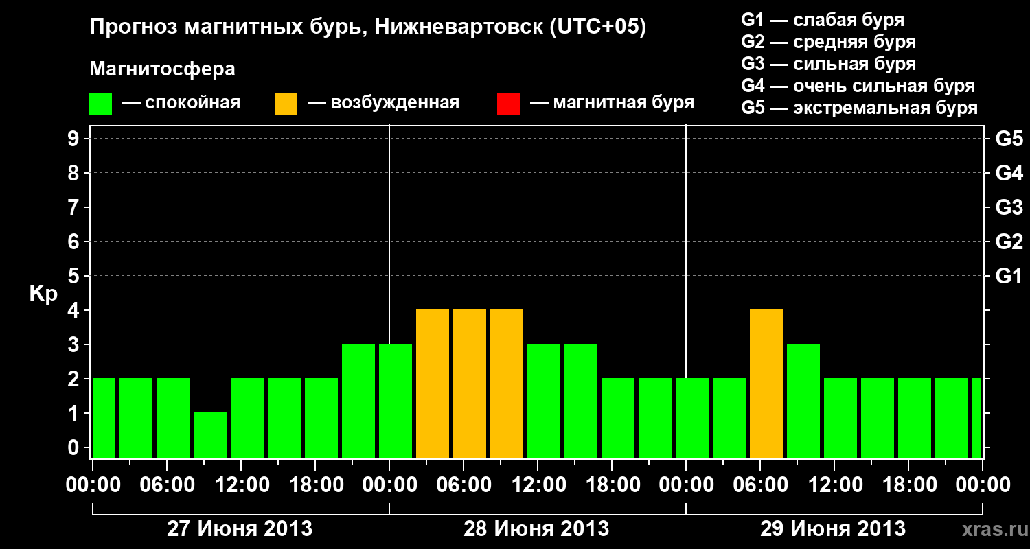 Прогноз магнитных бурь в Нижневартовске — 27 июня 2013 года
