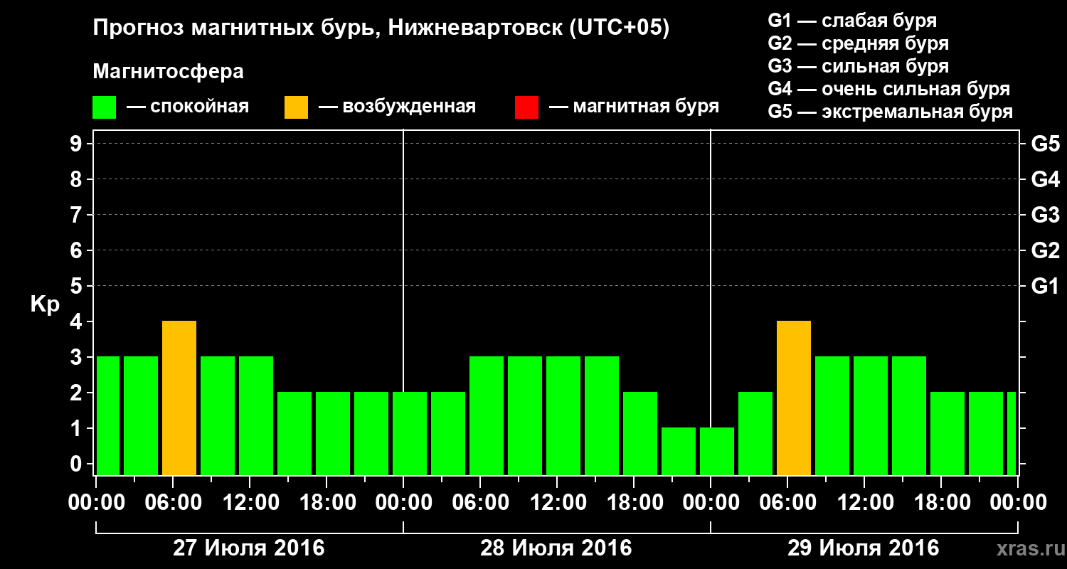 Прогноз магнитных бурь в Нижневартовске — 27 июля 2016 года