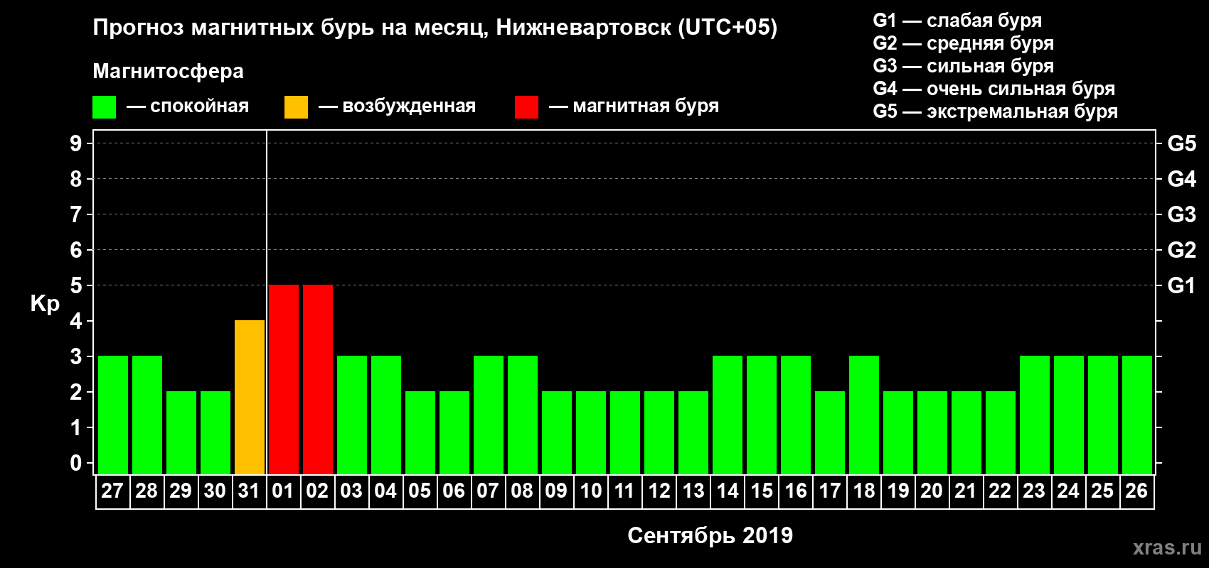 Прогноз магнитных бурь в Нижневартовске — 27 августа 2019 года