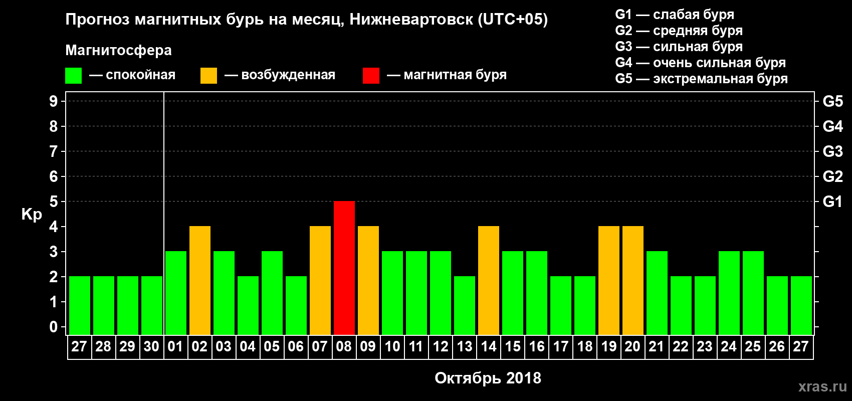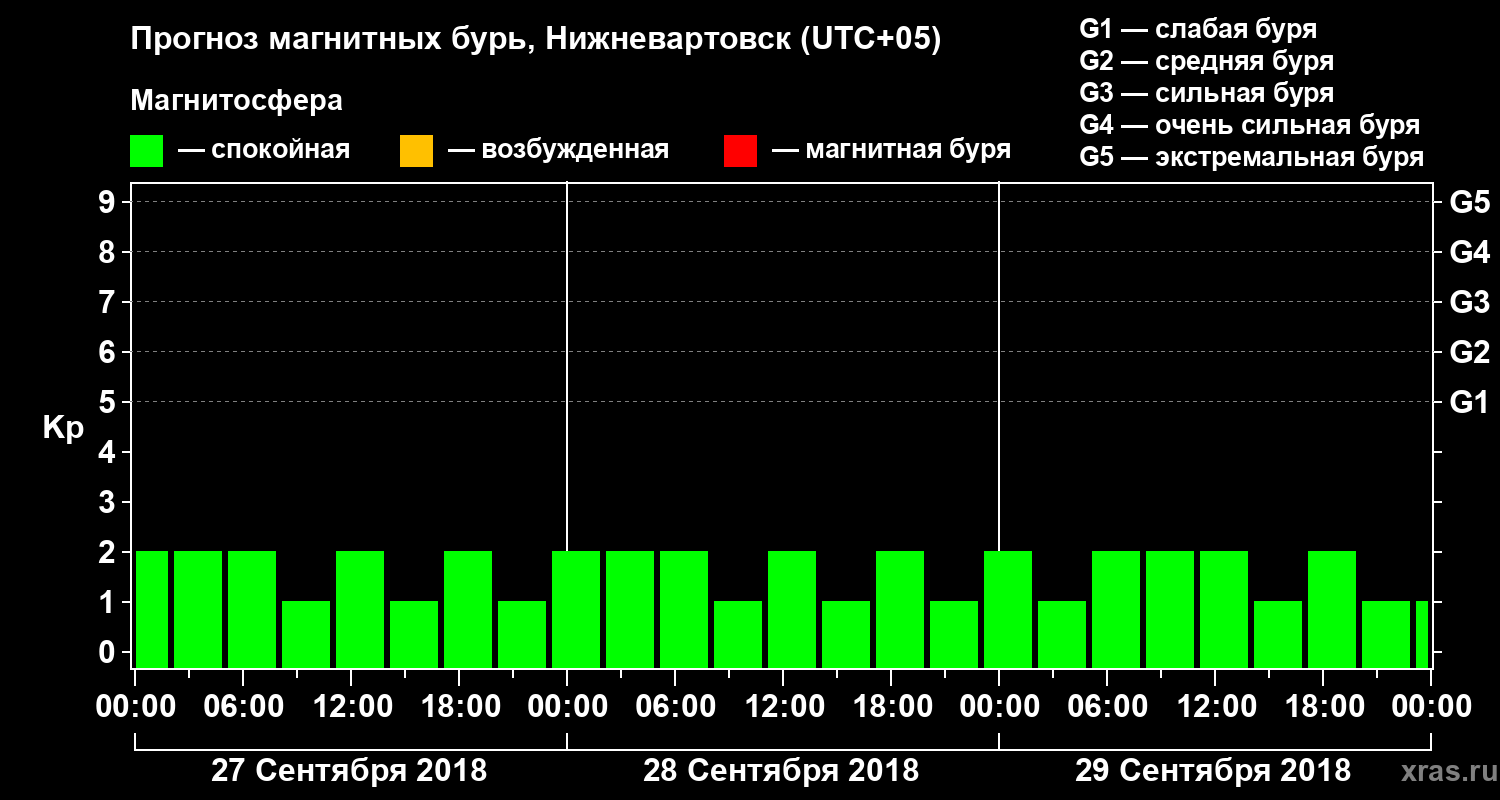 Прогноз магнитных бурь в Нижневартовске на 27 сентября 2018 года