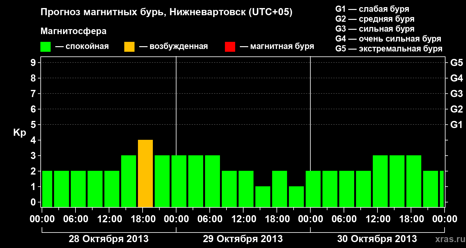 Прогноз магнитных бурь в Нижневартовске — 28 октября 2013 года