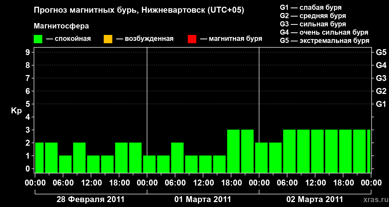 Прогноз магнитных бурь в Нижневартовске — 28 февраля 2011 года