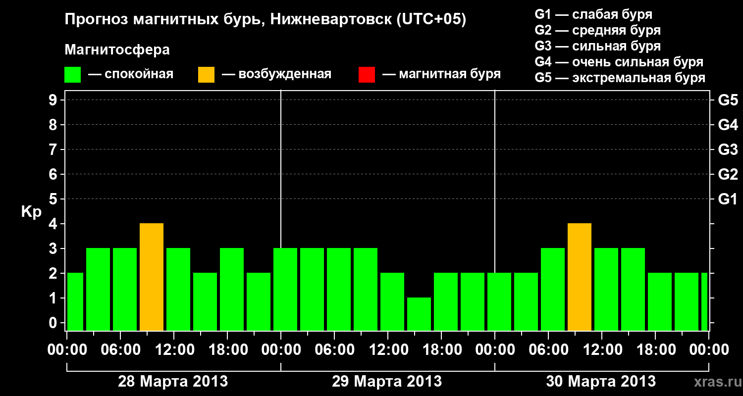 Прогноз магнитных бурь в Нижневартовске — 28 марта 2013 года