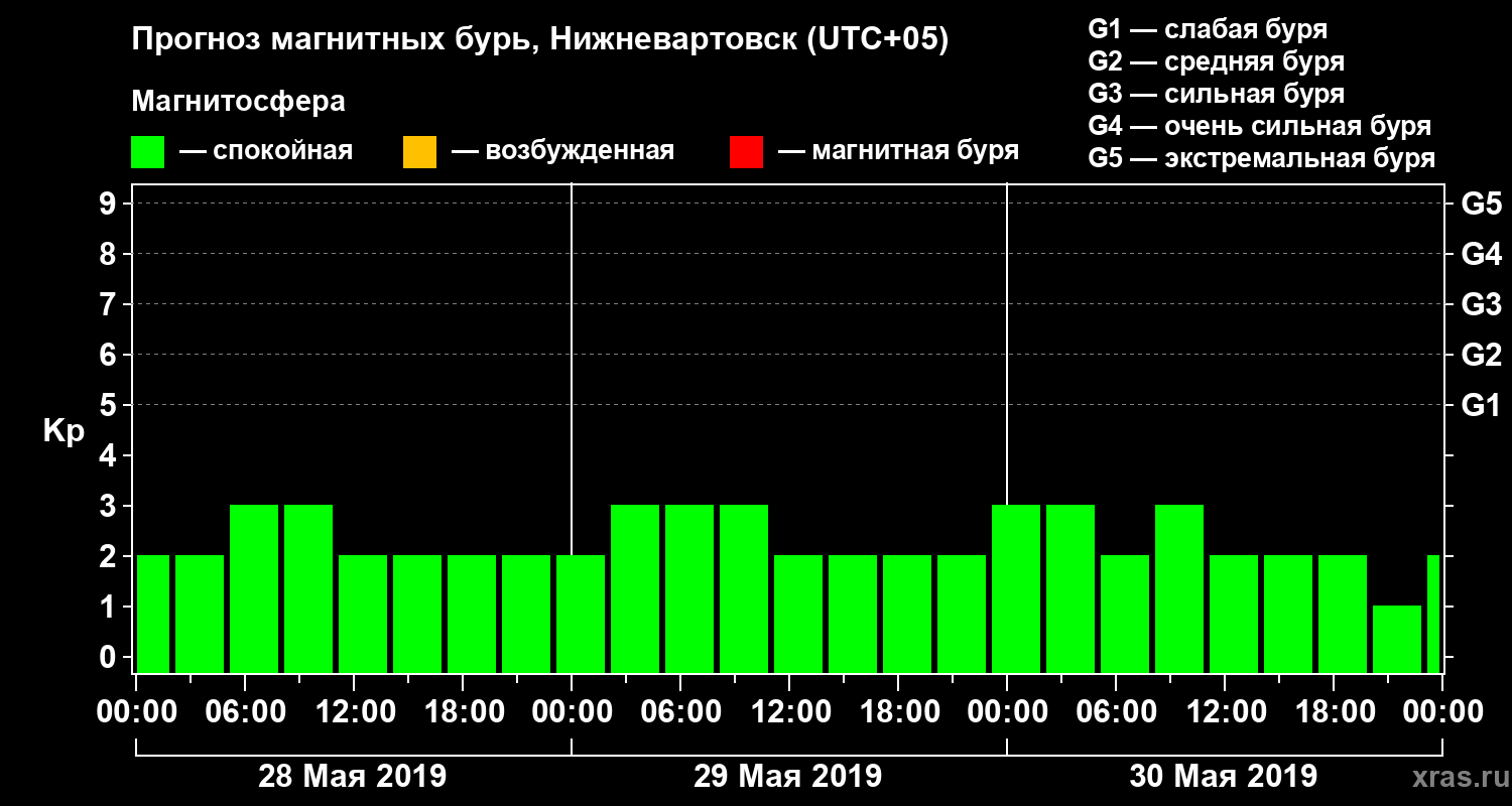 Прогноз магнитных бурь в Нижневартовске на 28 мая 2019 года