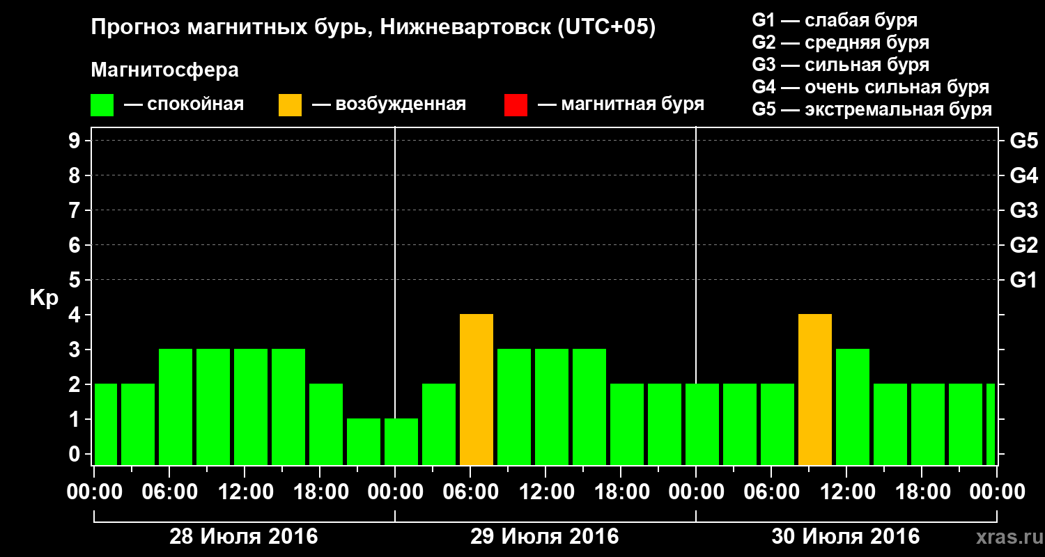Прогноз магнитных бурь в Нижневартовске — 28 июля 2016 года