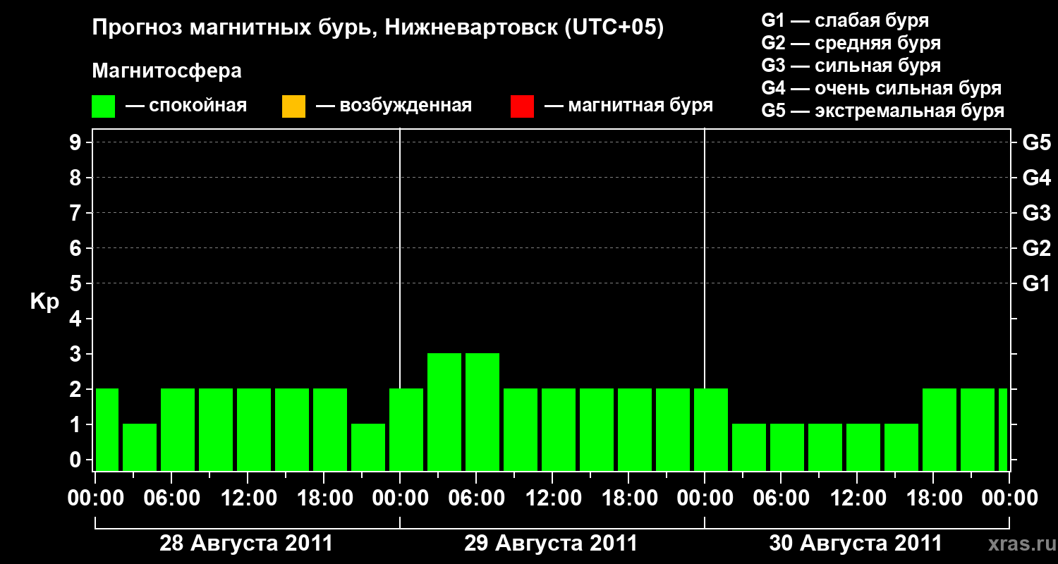 Прогноз магнитных бурь в Нижневартовске — 28 августа 2011 года