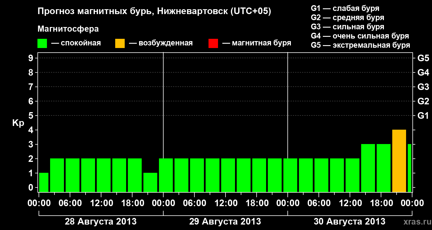 Прогноз магнитных бурь в Нижневартовске — 28 августа 2013 года