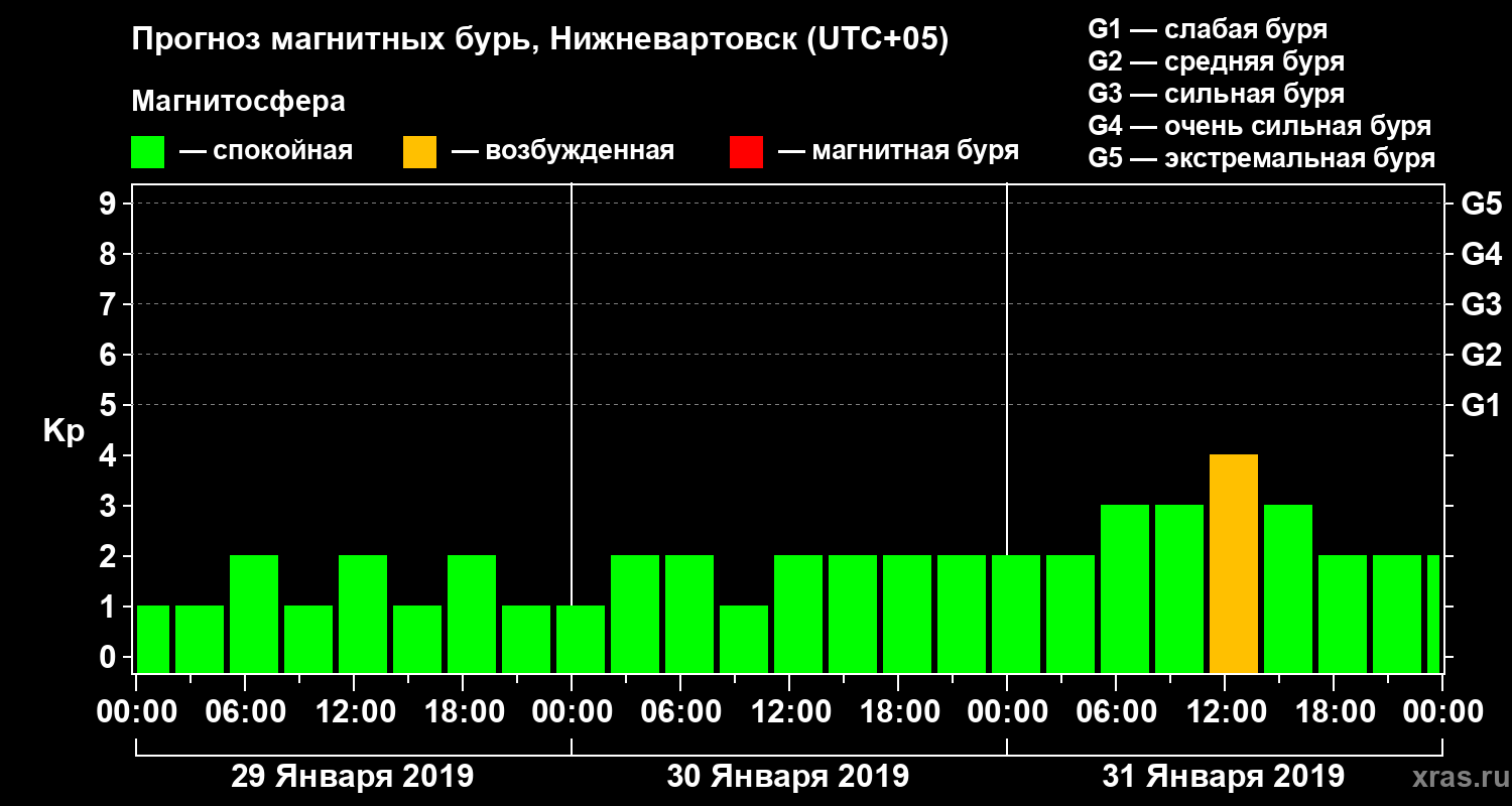Прогноз магнитных бурь в Нижневартовске на 29 января 2019 года