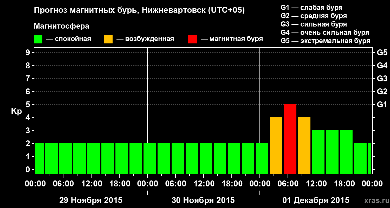 Прогноз магнитных бурь в Нижневартовске — 29 ноября 2015 года