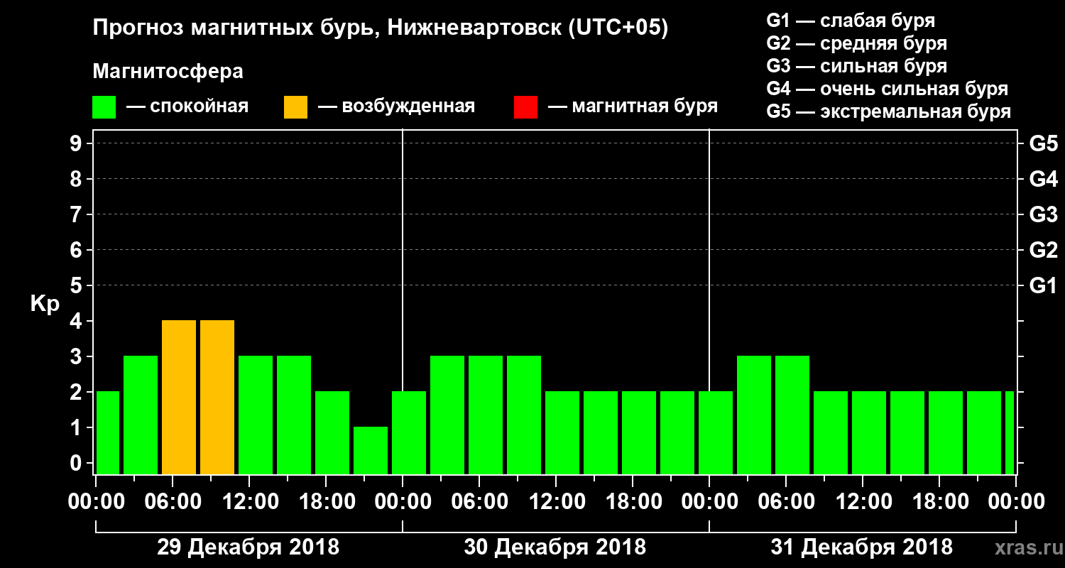 Прогноз магнитных бурь в Нижневартовске — 29 декабря 2018 года