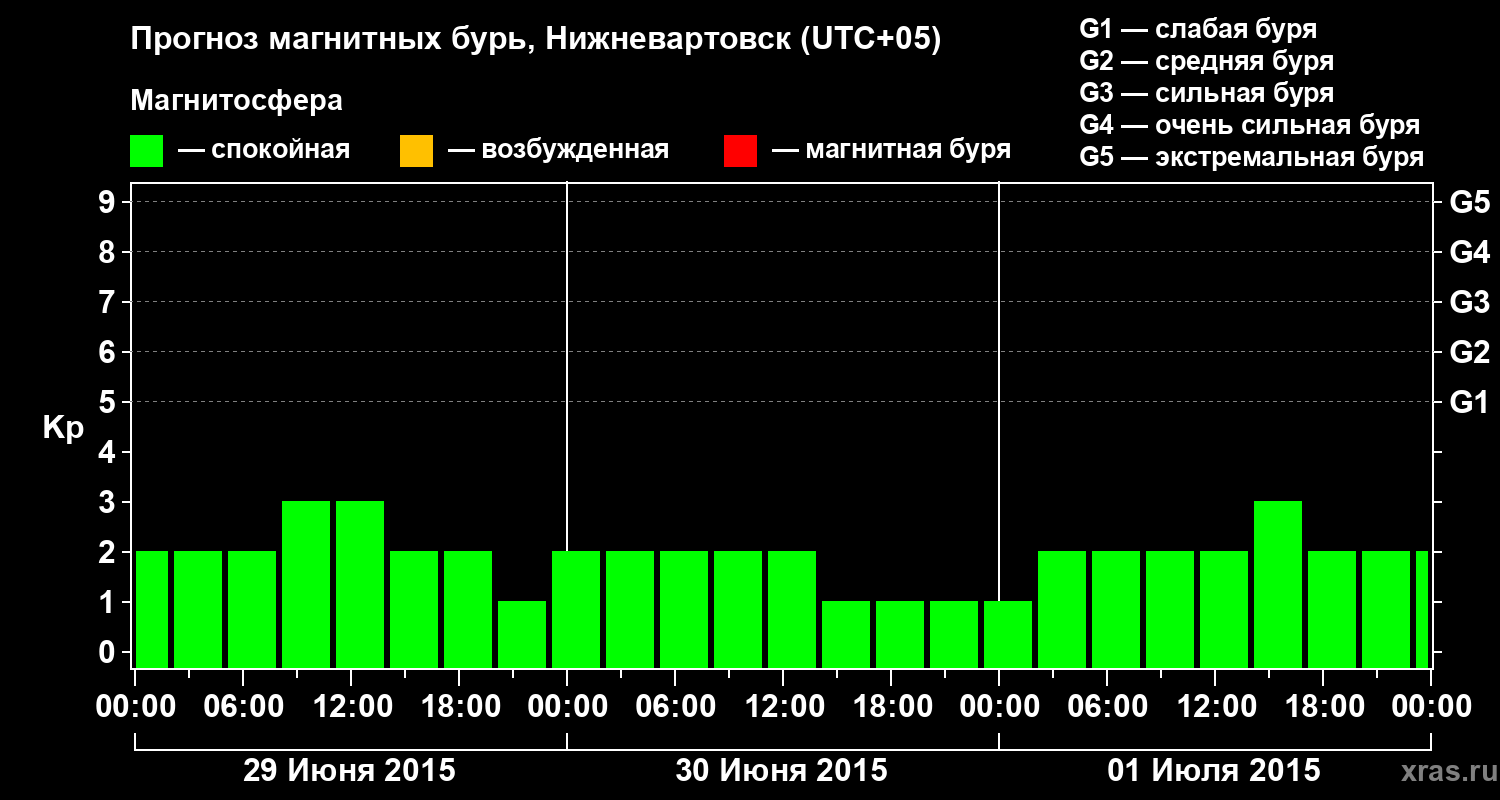 Прогноз магнитных бурь в Нижневартовске — 29 июня 2015 года