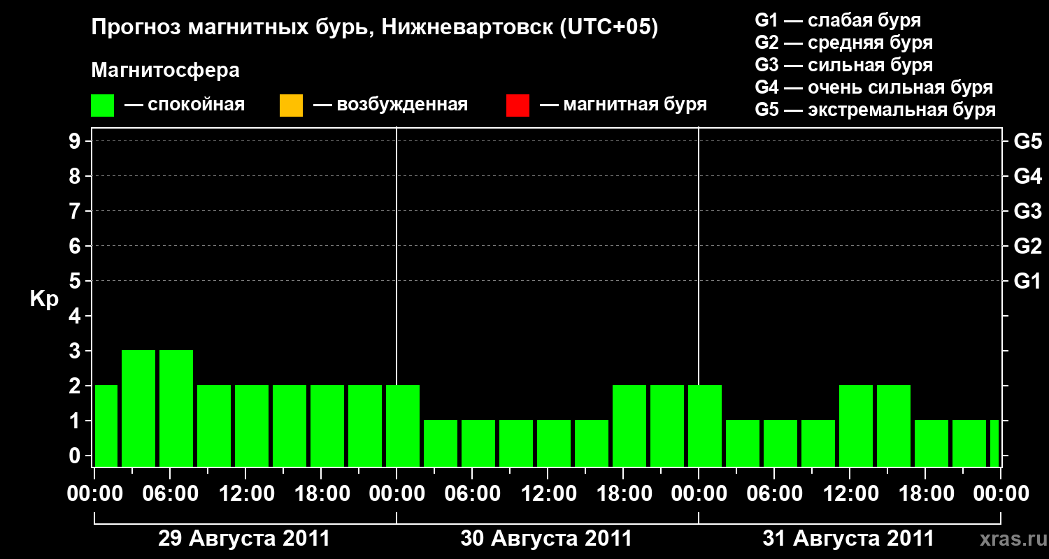 Прогноз магнитных бурь в Нижневартовске — 29 августа 2011 года