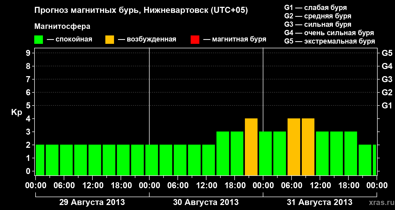 Прогноз магнитных бурь в Нижневартовске — 29 августа 2013 года