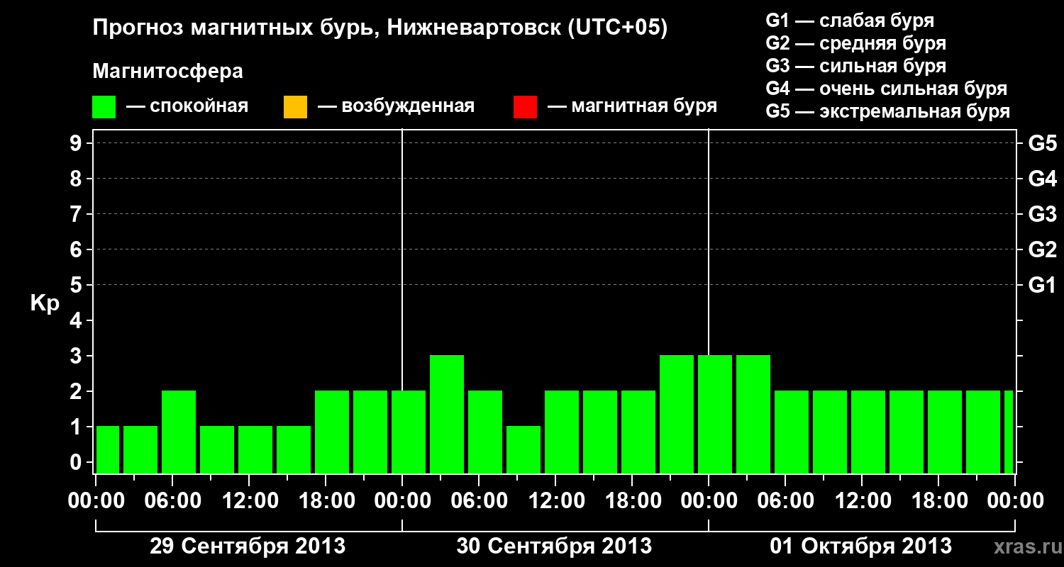 Прогноз магнитных бурь в Нижневартовске — 29 сентября 2013 года