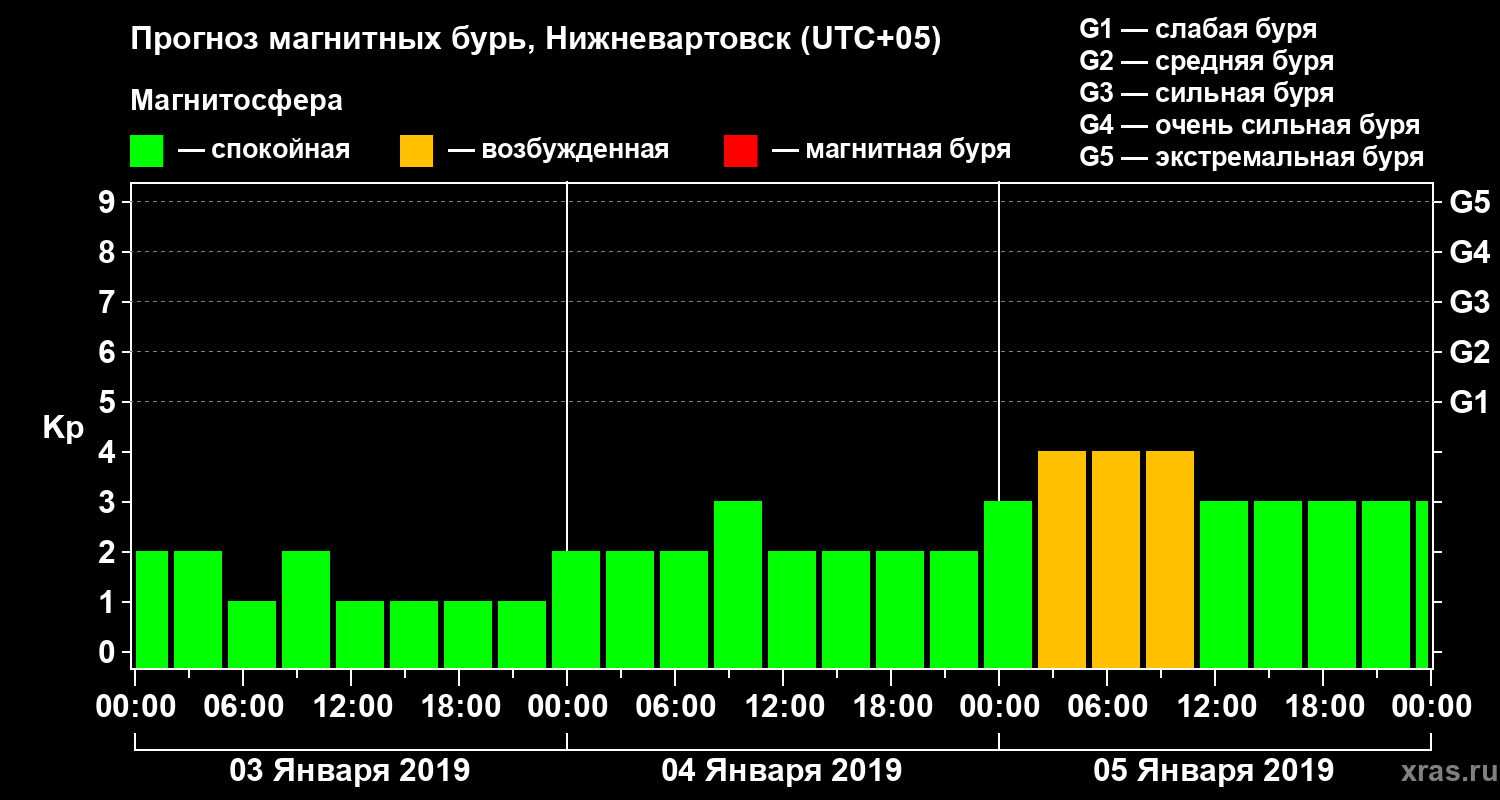 Прогноз магнитных бурь в Нижневартовске — 3 января 2019 года