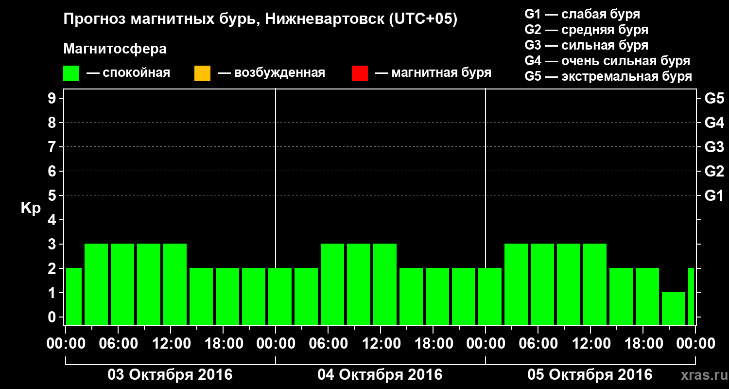 Прогноз магнитных бурь в Нижневартовске — 3 октября 2016 года