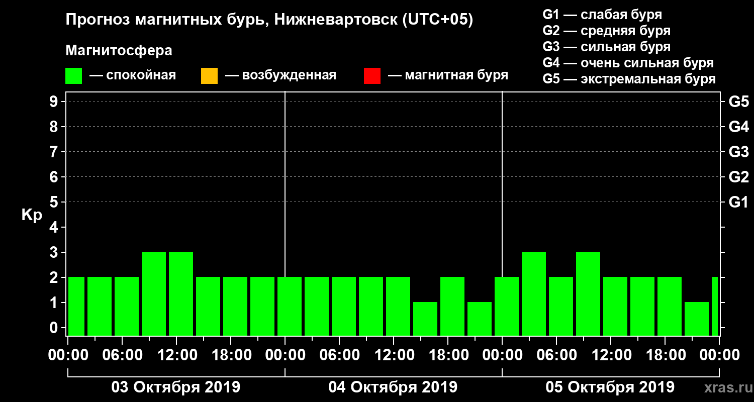 Прогноз магнитных бурь в Нижневартовске — 3 октября 2019 года