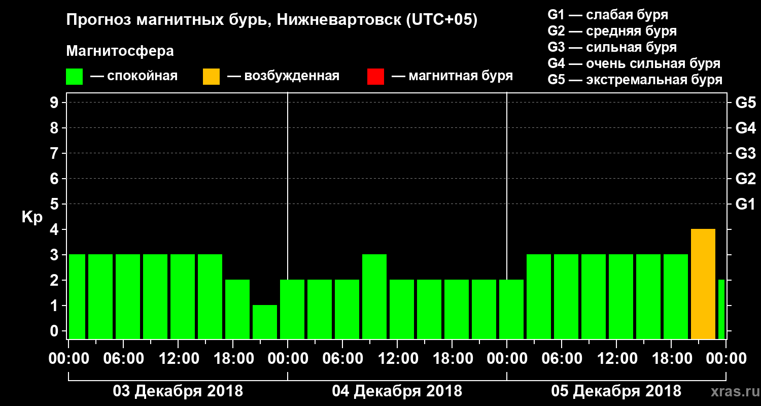 Прогноз магнитных бурь в Нижневартовске на 3 декабря 2018 года