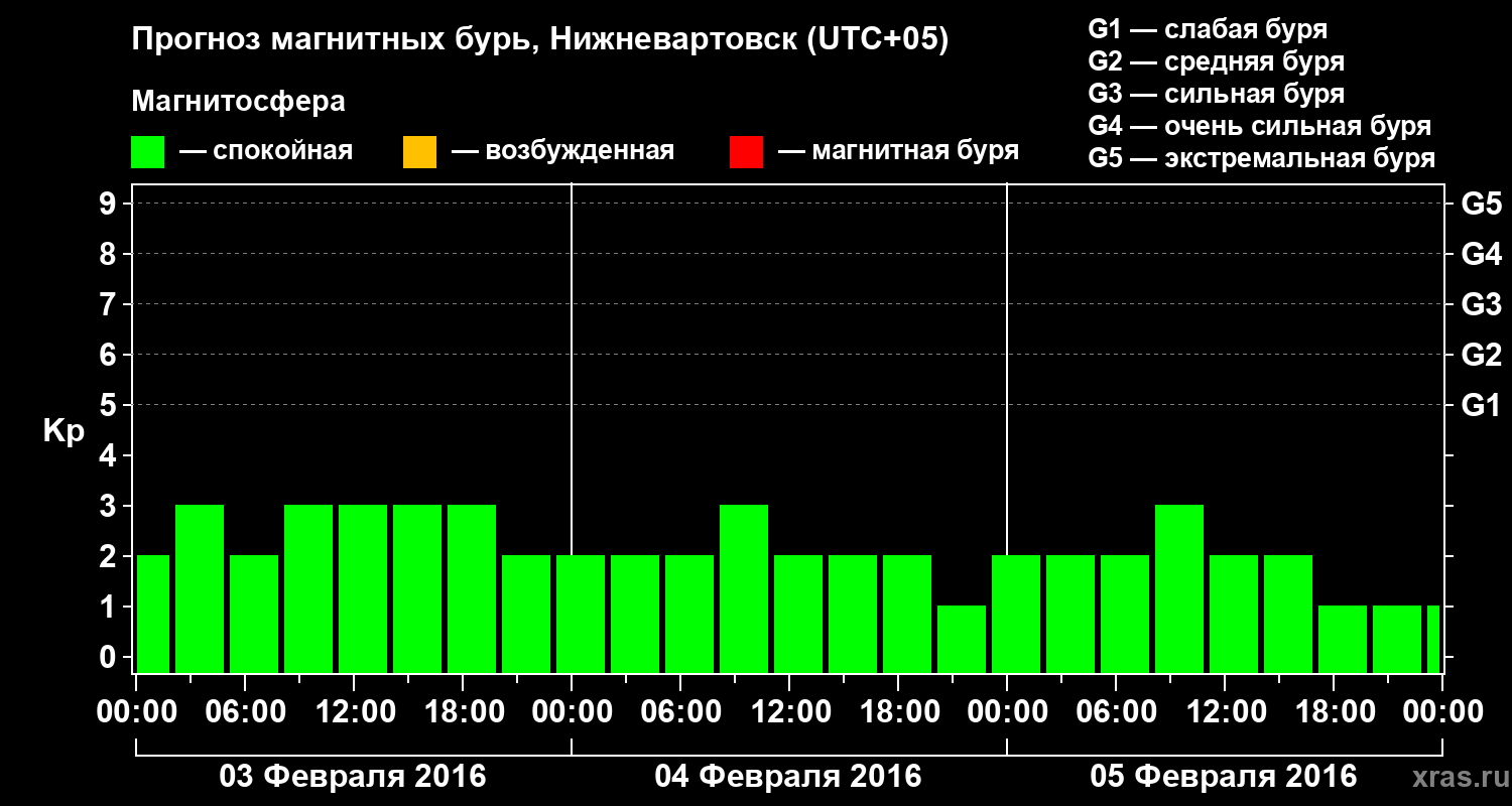 Прогноз магнитных бурь в Нижневартовске на 3 февраля 2016 года