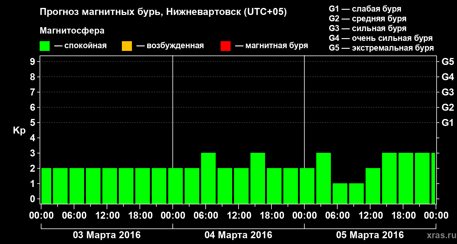 Прогноз магнитных бурь в Нижневартовске — 3 марта 2016 года
