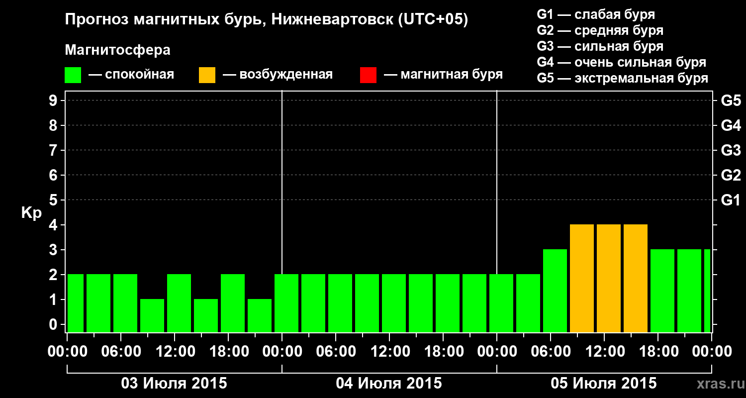 Прогноз магнитных бурь в Нижневартовске — 3 июля 2015 года