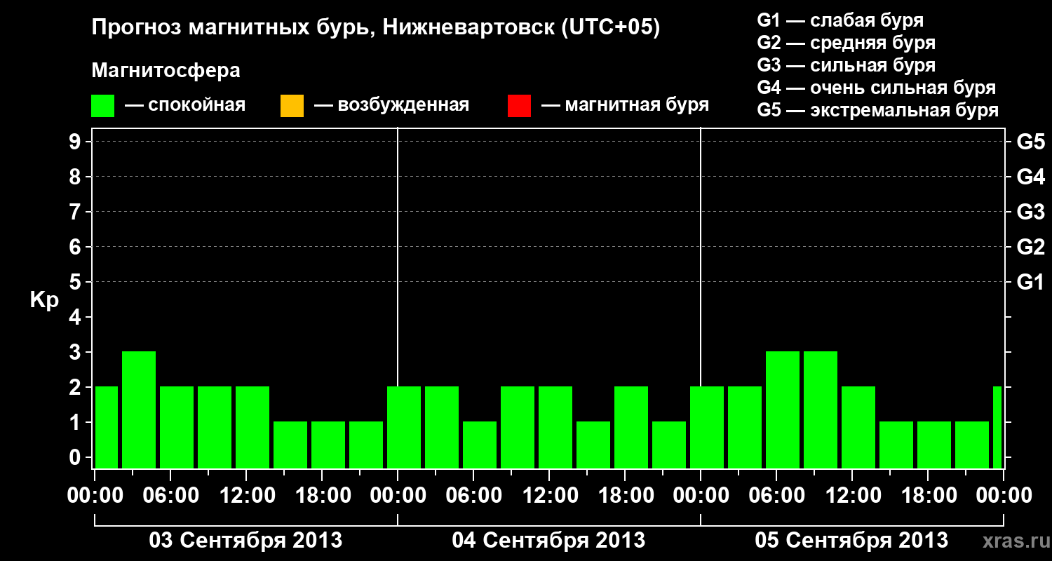 Прогноз магнитных бурь в Нижневартовске — 3 сентября 2013 года