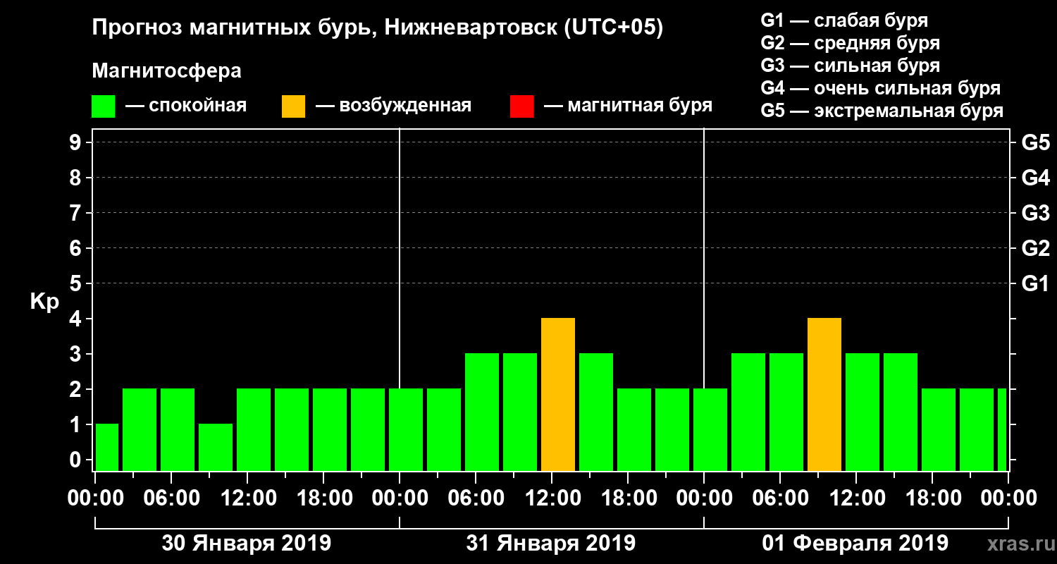 Прогноз магнитных бурь в Нижневартовске на 30 января 2019 года