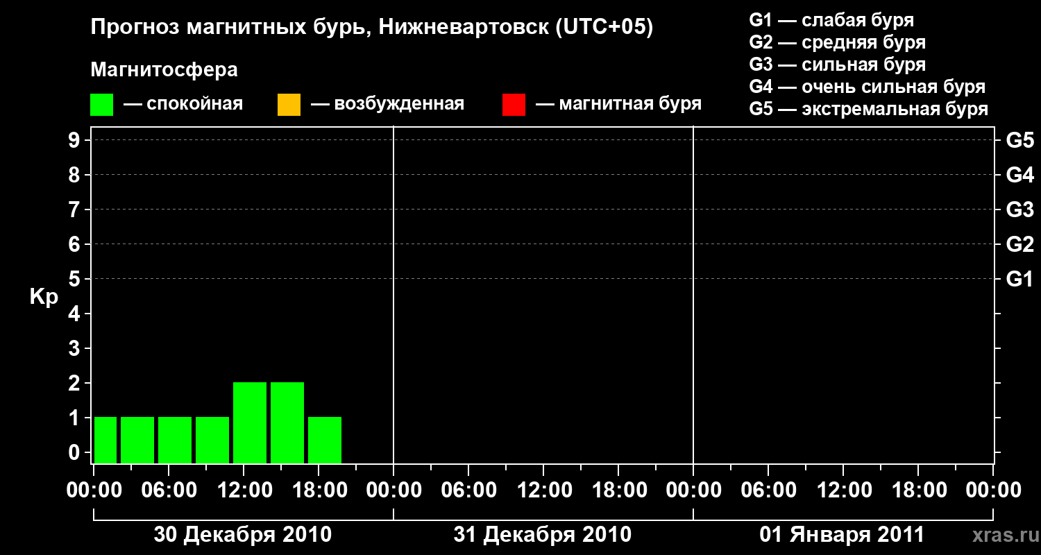 Прогноз магнитных бурь в Нижневартовске — 30 декабря 2010 года