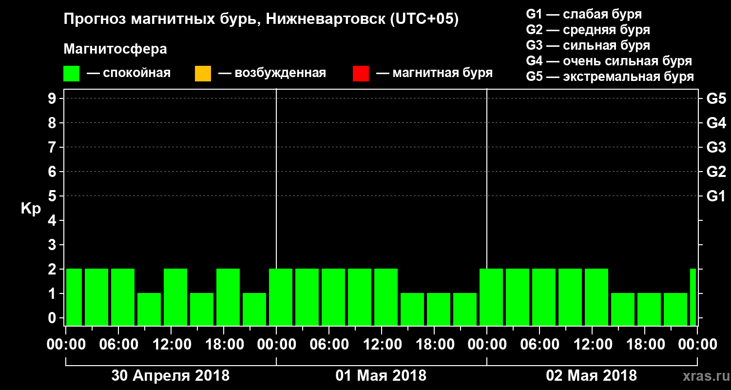Прогноз магнитных бурь в Нижневартовске — 30 апреля 2018 года