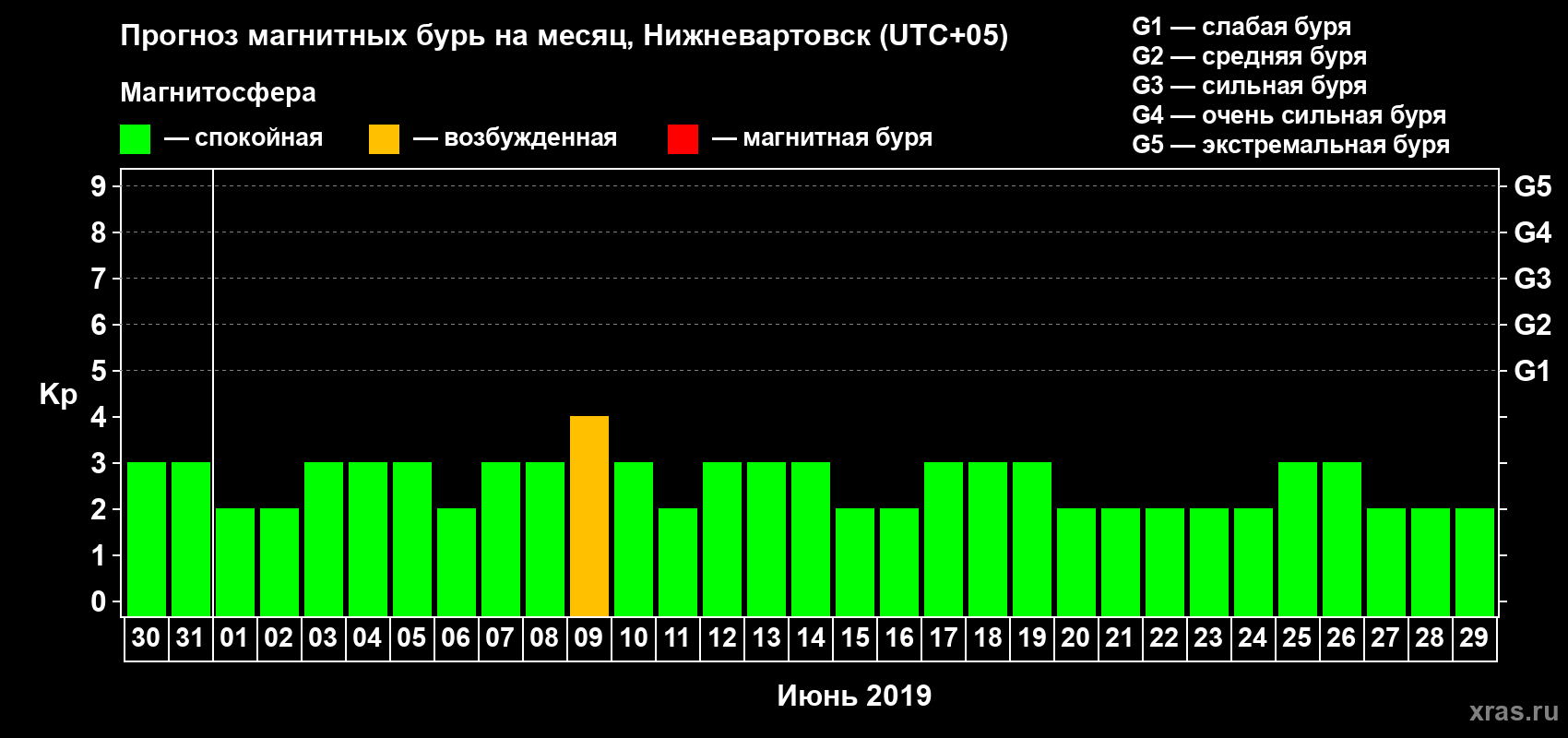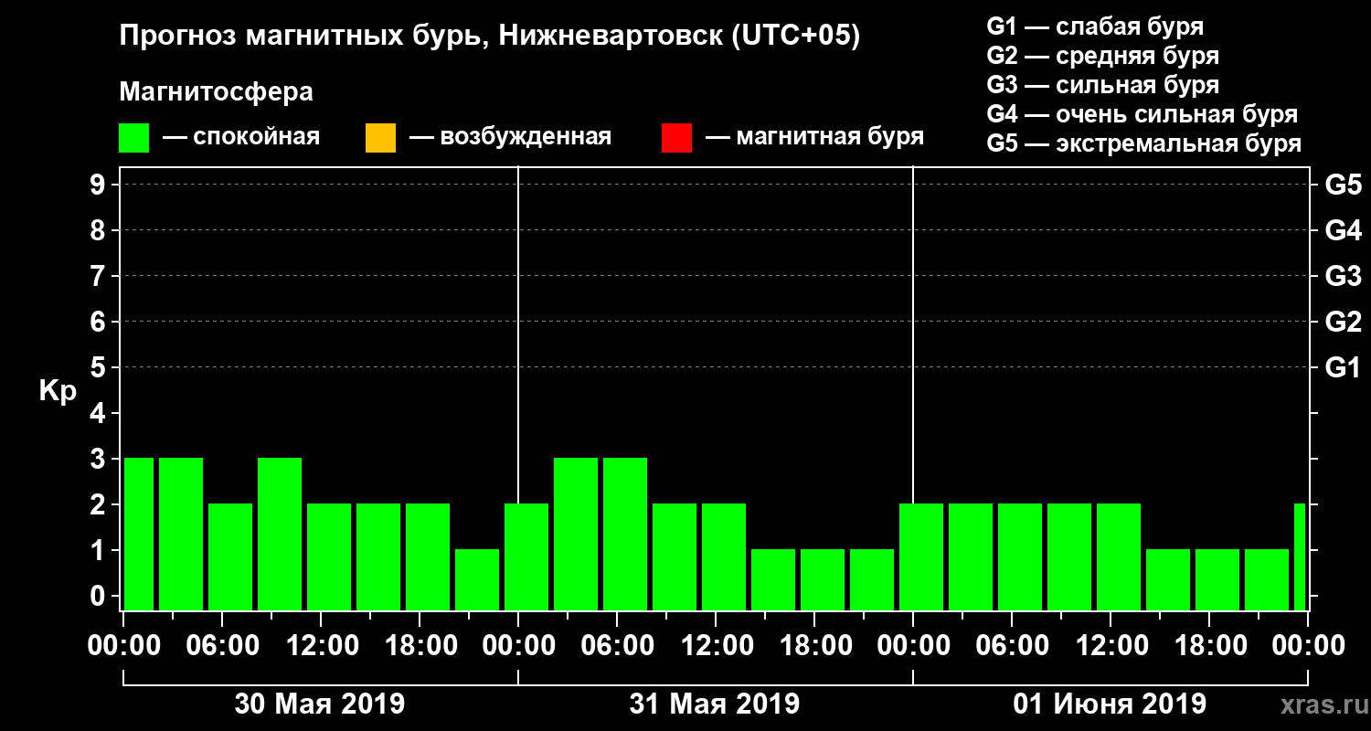 Прогноз магнитных бурь в Нижневартовске — 30 мая 2019 года