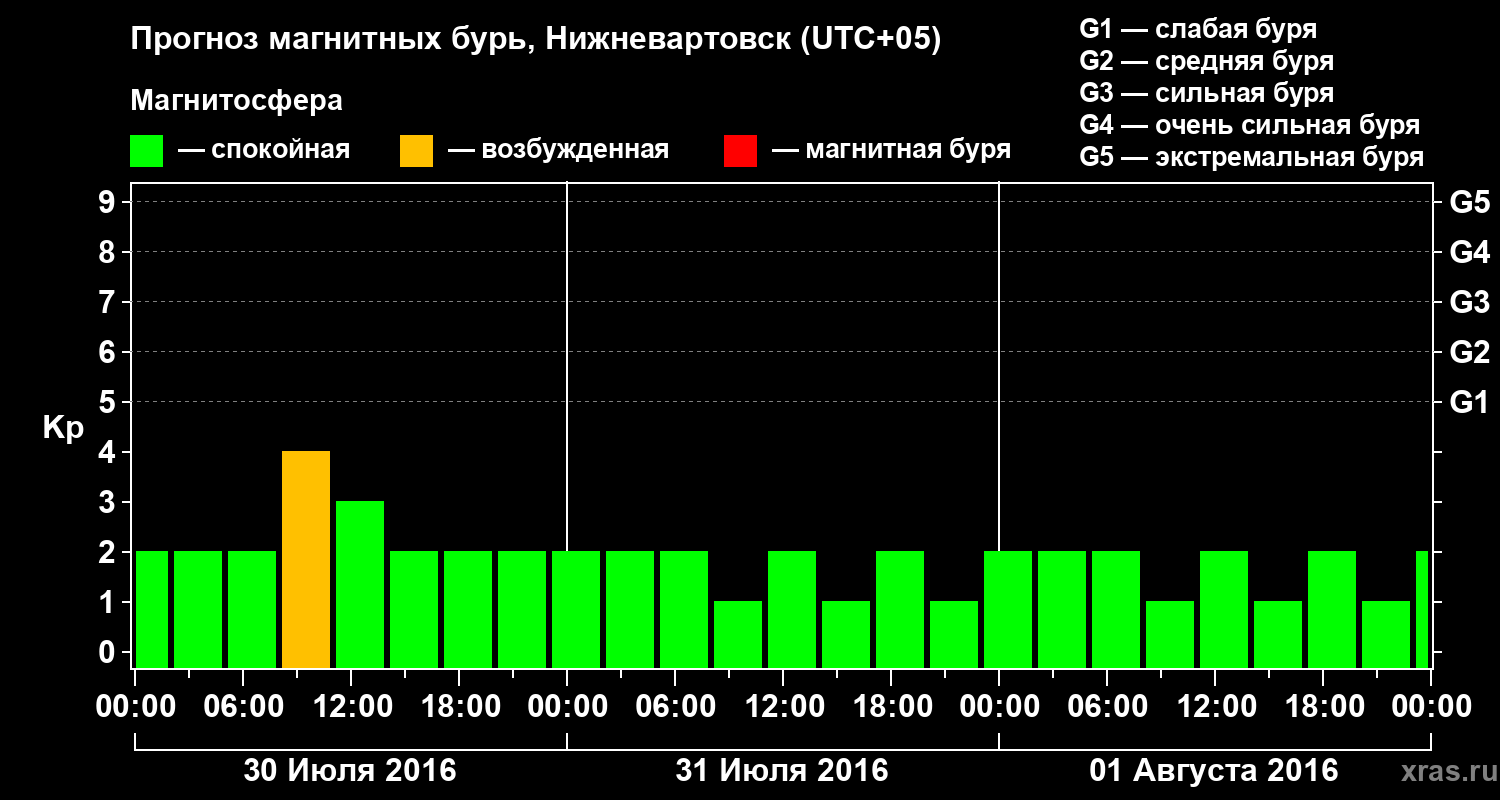 Прогноз магнитных бурь в Нижневартовске — 30 июля 2016 года
