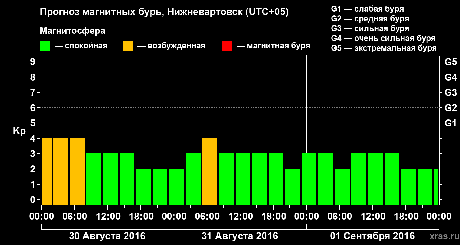 Прогноз магнитных бурь в Нижневартовске — 30 августа 2016 года