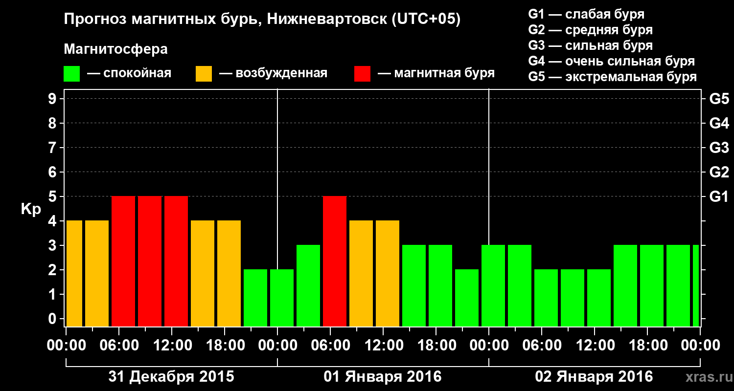 Прогноз магнитных бурь в Нижневартовске — 31 декабря 2015 года