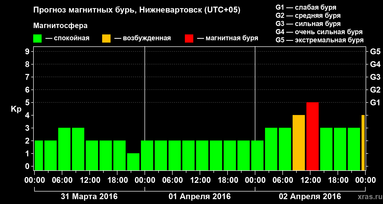 Прогноз магнитных бурь в Нижневартовске — 31 марта 2016 года