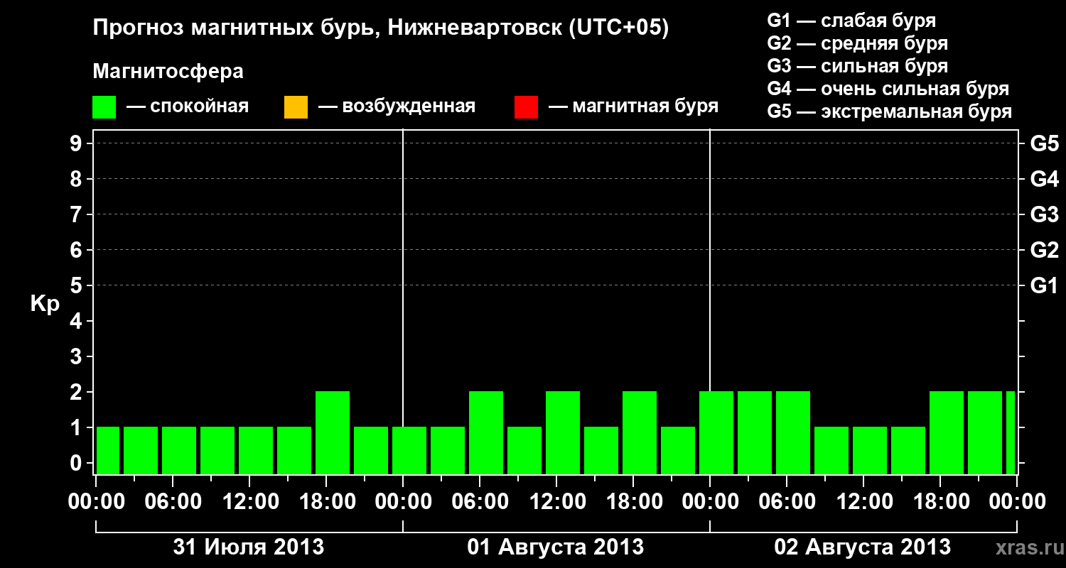 Прогноз магнитных бурь в Нижневартовске — 31 июля 2013 года